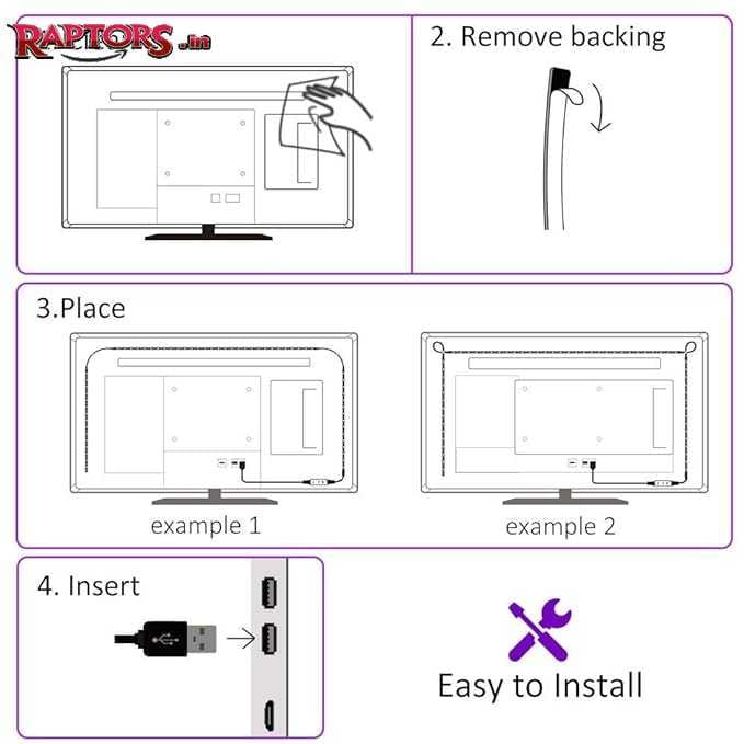 Installing the Raptors Smart LED TV Back Light is a breeze. The flexible LED strips come with an adhesive backing that securely attaches to the back of any TV, regardless of size. Simply cut the strips to fit your screen and plug them in. The energy-efficient LEDs provide bright, vivid illumination while consuming minimal power, ensuring long-lasting performance and lower energy bills. Upgrade your TV setup with an eco-friendly lighting solution that combines convenience and style.